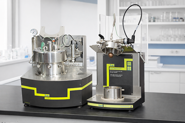 This is an example of a test performed to identify in detail the “onset” temperature of the runaway. As each incremental temperature step can take over 30 minutes to complete, the experiment will inevitably take a long time and produce a large amount of data. Figure 2a and Figure 2b show the Phi-TEC II instrument and a corresponding test cell, respectively. Their specialized design allows the collected data to closely replicate the behavior of large‑scale equipment under adiabatic conditions.